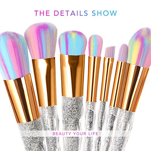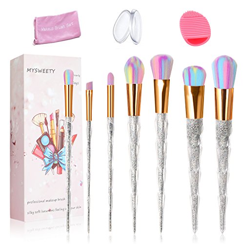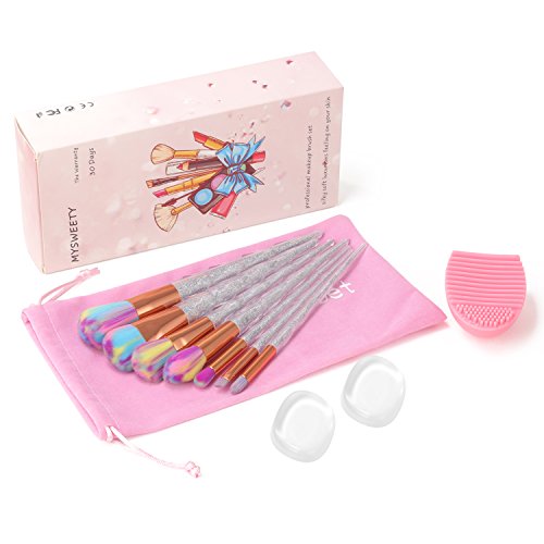 11PCS Makeup Brush Set, MYSWEETY 2017 7PCS Foundation Colorful Unicorn Blending Cosmetic Eyeshadow Brush + 2pcs Silicone Makeup Sponge + 1pc Makeup Wash Egg 1pc Makeup Brush Bag?