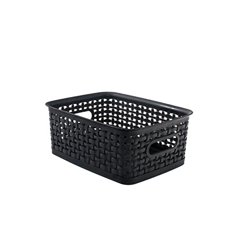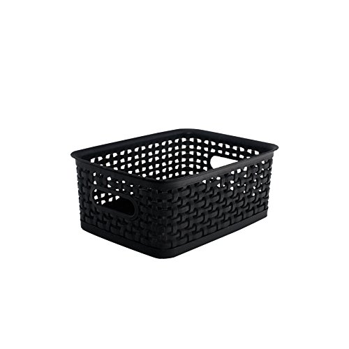 ADVANTUS Small Plastic Weave Bins, 10" x 7.25" x 4", 3 Pack, Black (40326)