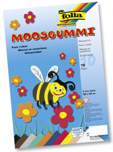 Folia Moosgummi, 2mm stark, 20x29cm 10 Bogen oder in 29x40cm 5 Bogen zum Basteln