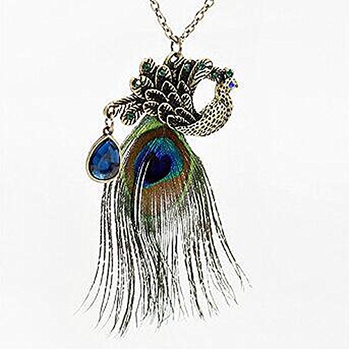 -. Feature : Fashion Bohemia Peacock Feather Pendant Necklace Jewelry for women and girl / Size: Free Size (it can be adjusting the size) / Material: Alloy and Feather / Jewelry necklace will keep color. Suitable for women and girls on party, event, casual and other special occasions. / If you want more color or style, please choose in my store from click our name "A&C's Beauty Girl", we have so many different style alloy or feather jewelry like earrings, necklace,headband, hair chain and so on. Hope you have a good shopping tour.