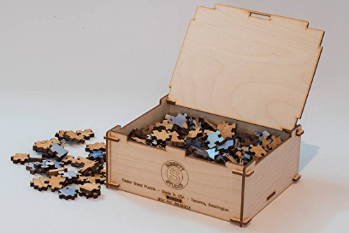 -. Feature : Handcrafted the in Pacific Northwest. / Even the cedar box is hand made from re-purposed wood. / Hours of entertainment. / 300 pieces. / Finished size 15" x 10".