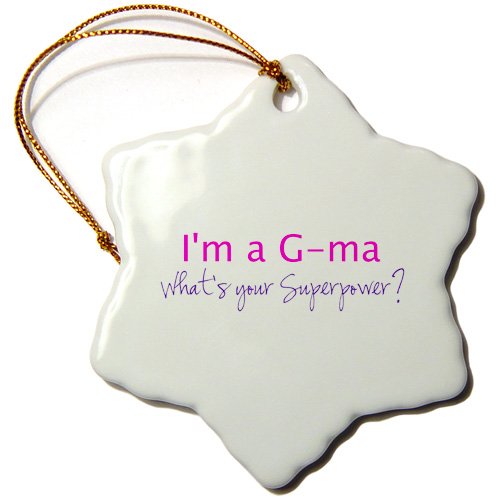 3dRose orn_193733_1 I'm a G-Ma What's Your Superpower Hot Pink Funny Gift for Grandma Snowflake Porcelain Ornament, 3"