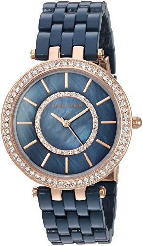 Anne Klein Women's AK/2620NVRG Swarovski Crystal Accented Rose Gold-Tone and Navy Blue Resin Br...