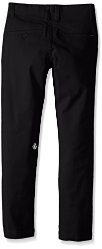 The Volcom modern stretch chino pant is perfect for the skate park or the office. This chino is made from a comfortable cotton and polyester blend with a little stretch to make sure you get a full range of motion. Loaded with details like custom stone embroidery on the inside left leg, Volcom flag tag on back right pocket and an asymmetrical back yoke, this is the plant that will set you apart.Feature