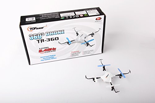 With the Top Race TR-360° you can create your own airshow, The TR-360 inverted flyer can fly in anyway even upside down while making flips and stunts in the air. Never worry about your drone falling face down because it will not effect the flying off the ground. This 4 channel drone has a 6 axis gyro which make it super stable and easy to control. The drone has a headless mode option which is extremely helpful for beginners, comes equipped with a 2.4Ghz Transmitter enables it to fly outside up to about 250 feet away. There is no need to register this drone with the FAA. This makes it a fun and exciting rc drone for kids of all ages for indoors and outdoor use. Enjoy Your Flight!