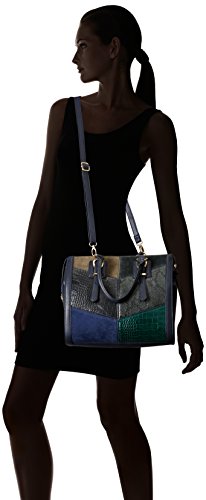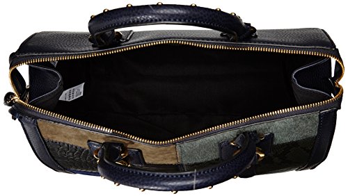 Structured satchel with patch work detail and stud detail on the handle. Dimensions in cm: 33*28*18
