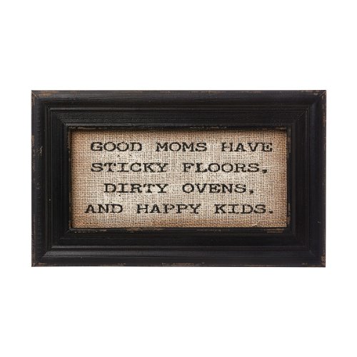 Primitive 13.5" x 8" Distressed Wooden Framed "Good Moms" Burlap Wrapped Wall Hanging