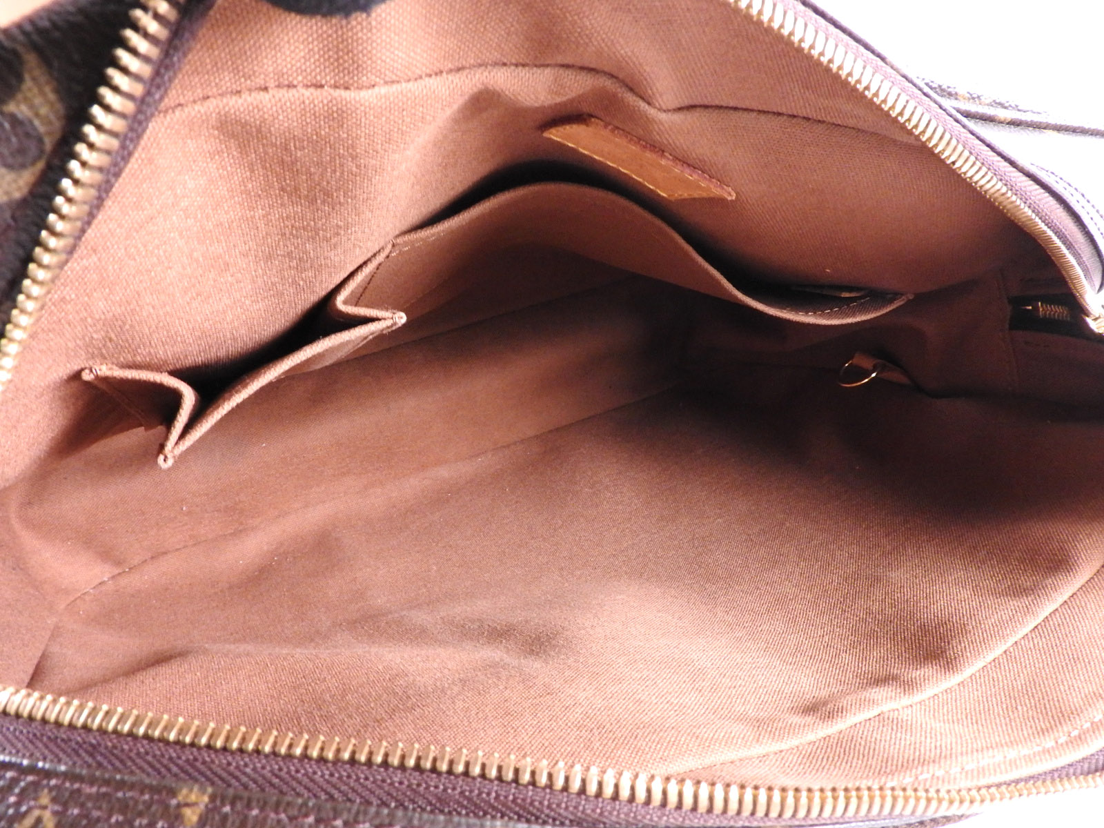 | Exterior | Monogram: Used feeling. Slight stains and fading. Leather: Used feeling. Some scratches, stains, abrasions and tanning. |