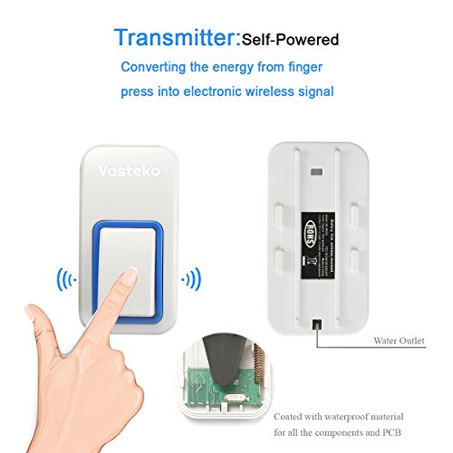 Overviews Vaskeko battery-free wireless doorbell requires no battery and no wire, big save on money every year! It brings a whole new level of convenience to your daily, you do not need to search for weird battery sizes (many other wireless doorbells require A23 12V) and never worry your transmitter runs out of batteries!