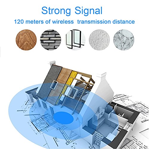 DEPENDABLE OPERATING RANGE - Each doorbell is set with a unique radio frequency code at the factory.This gaurantees your doorbell will not interfere with other remotes devices, and its 400ft(120m) operating range means you can place the plug-in unit several rooms away from the door.