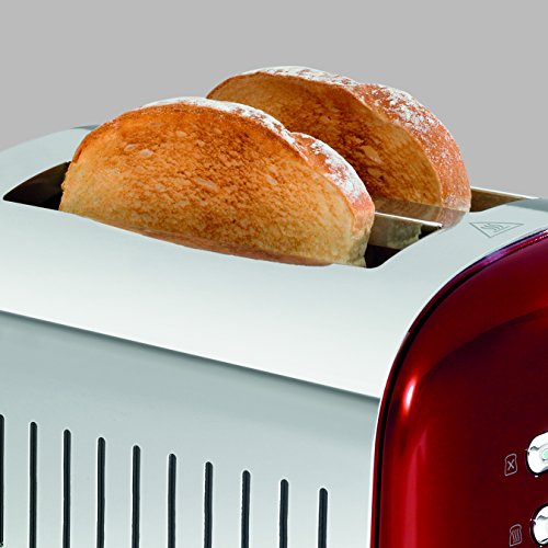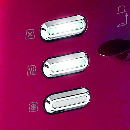 -. Feature : Kirschroter Edelstahltoaster / 2 Brotschreiben, 2 Toasterschlitze / Variable Bräunungssteuerung sowie breitenvariable Toasterschlitze / Abnehmbarer Brötchenaufsatz / Funktionen zum Auftauen, Abbrechen und Aufwärmen