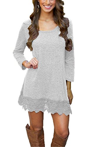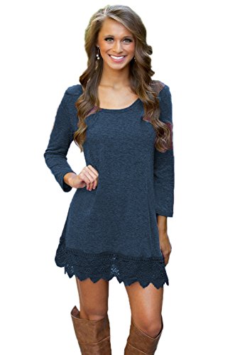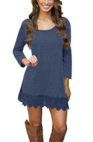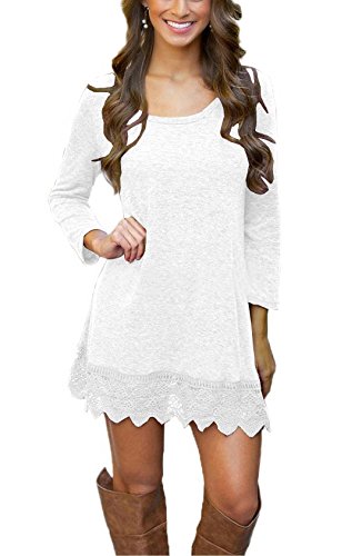 Binding : Apparel Product Description This women casual tunic dress features lace hem and cotton fabric which has a good stretchability, sexy and comfortable, simple but elegant. It is great for many occasions and you can wear it all year round--the best shopping chioce for pretty women. The stretchability makes lady a regular fit and has a good shape on lady's body. You can style it up with a infinity scarf and a pair of boots which will be looked awesome. You can also wear this during fall season or wear a jacket over it for the winter season. Its super cute and comfy. Three colors: Purple, White and Black. Package: one dress and a pair of imitation pearl necklace. Handwash, no bleach, mix to wash