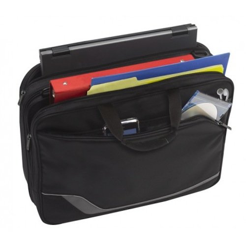 - Feature : Padded rear compartment holds laptops up to 17.3 Inches / Clamshell design separates laptop from accessories allowing you to clear airport security faster. / Travel Sentry approved, meets all Checkpoint Friendly requirements to allow clear Check Fast x-ray scanning. / Front compartment holds files, magazines, books and other personal items. / Zippered front organizer features accessory pockets, pen loops and MP3 player pocket with headphone port. / ICtrl headphone pocket on front of case stores headphones when not in use / ICtrl cord manager neatly organizes your cables or usb wires and rear strap manager holds your strap when not in use / Ride Along strap on back of case allows you to slip over telescoping handle system for consolidated travel