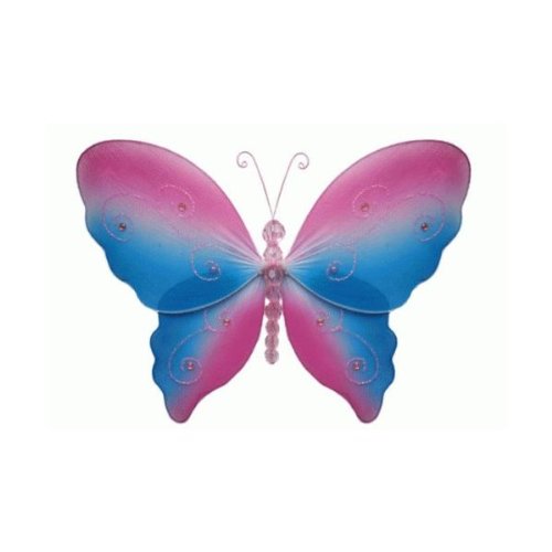 Hanging nylon butterfly craft nursery bedroom girls room ceiling wall decor, wedding birthday party baby bridal shower decorations - Serenity Butterfly Decoration - 5" blue/dark pink