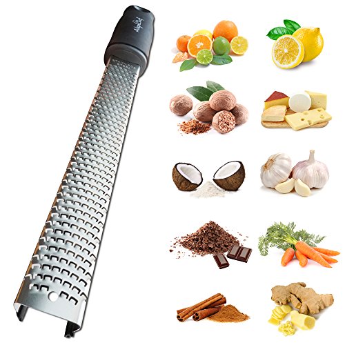- ★ ROBUST AND RESILIENT PREMIUM QUALITY ★ The Grater-Zester has a razor-sharp stainless steel blade that won't rust and a comfortable, non-slip handle. Its unique curved sides make it extremely rigid and allow you to apply more force when it's needed.