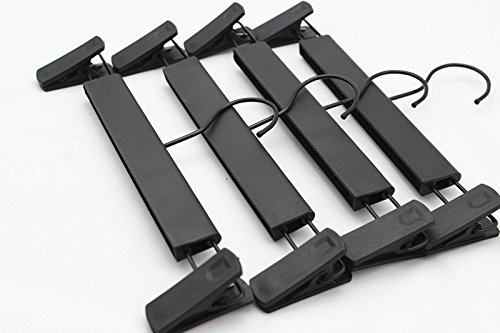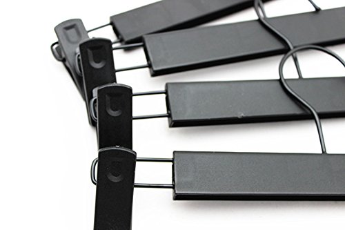 -. Feature : ABS and iron material, durable and safety, / Closet space save,size: 12*6*0.6 inches / Two adjustable clips,non-slip design / Suit for many kinds of pants, male and female / Pack of 10 hangers. Hooks are separate from the body to avoid damage in transport