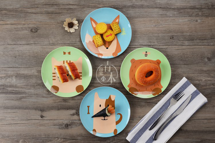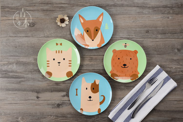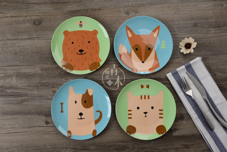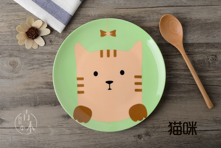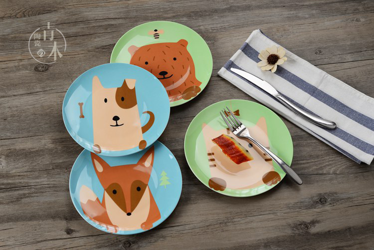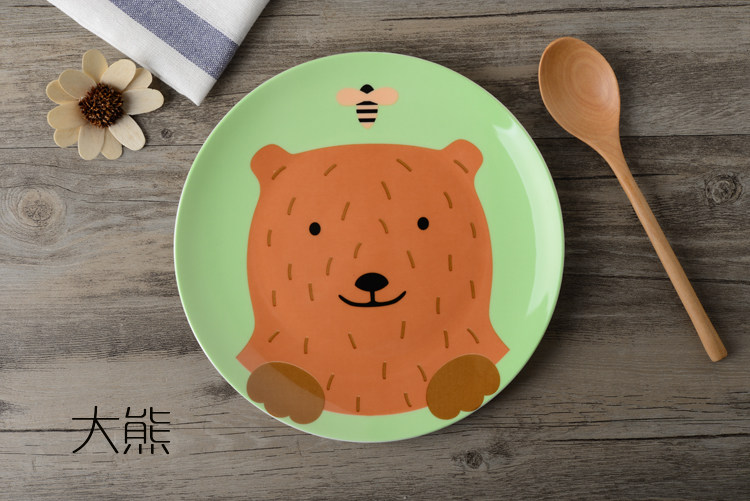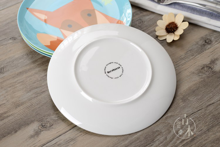 北欧卡通动物8寸圆形骨瓷点心盘糕点盘 陶瓷西餐盘