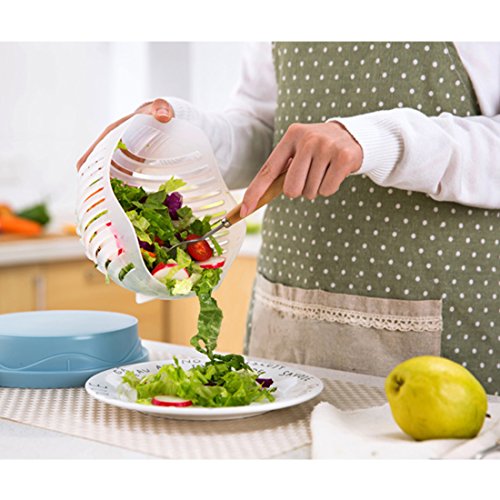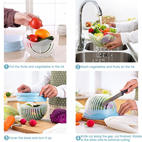 Salad Cutter Bowl, 60 Seconds Salad maker Fast Fruit Vegetable Cutter Bowl, Fast Fresh Salad Slicer and Salad Chopper by VANDER LIFE(Blue)