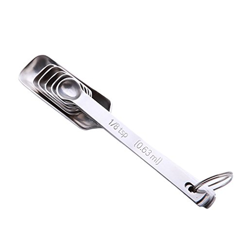 - SIX MEASUREMENT: This set comes with 6 capacities: 1Tbsp- 15ml, 1tsp-5ml, 3/4tsp-3.75ml, 1/2tsp-2.5ml, 1/4tsp-1.25ml, 1/8tsp-0.63ml, cab be used to measur spice, sugar, salt, oil, coffee ect.