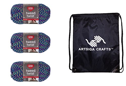 Red Heart Tweed Twist Yarn (3-Pack) Royal E836-9385 with 1 Artsiga Crafts Project Bag