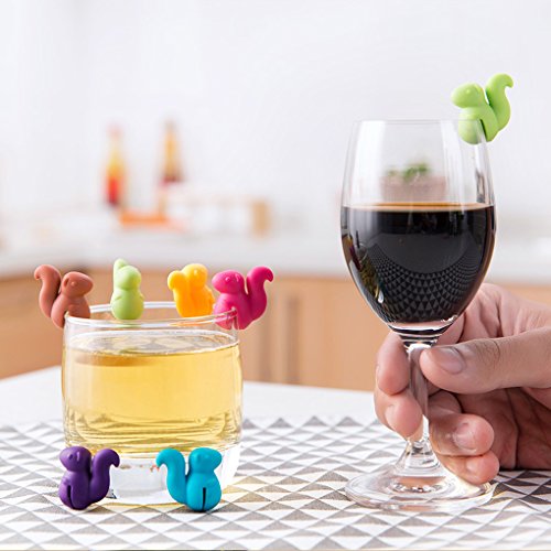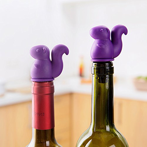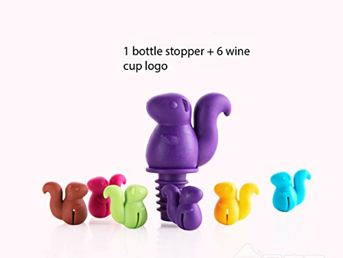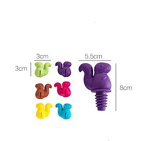 -. Feature : PP material made of colorful, cartoon squirrel modeling, Meng Meng da, containing a bottle stopper +6 sets of cup feet, used to seal the bottle, identify the glass to meet the needs / This wine bottle stopper will provide an air-tight seal to prolong and preserve opened bottles of wine. / Easy to insert and to remove from the bottle; simply press the stopper into the bottleneck to create an airtight seal that will not leak even if the bottle is laid on its side. / Threaded mouth design, sealed tight, no leakage / 6 cup logo, identify the cup, caught in the cup, to prevent the wrong.Each cork color is randomly sent