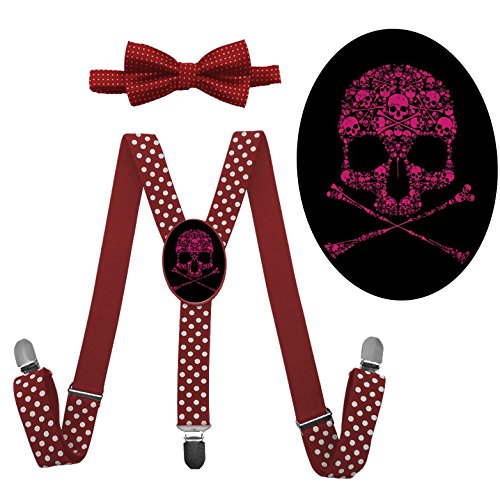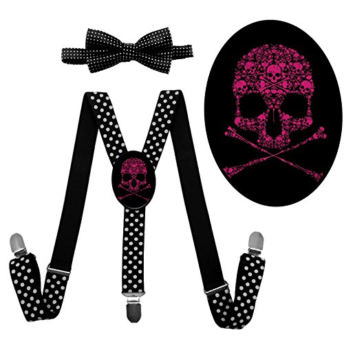 (QZ-Lee)/Accessories/Suspenders Cummerbunds/DIRECT FROM USA/QZ-Lee Pink Skull Suspender Bow Tie/Unisex Suspender/Adjustable Suspender/Y-Back Suspender