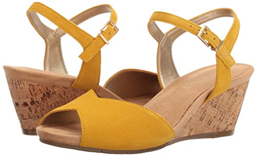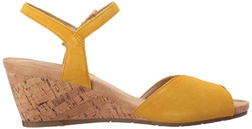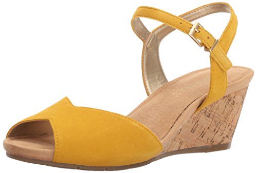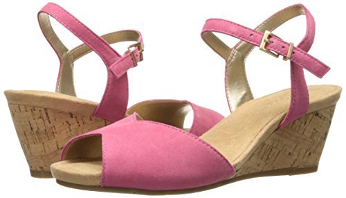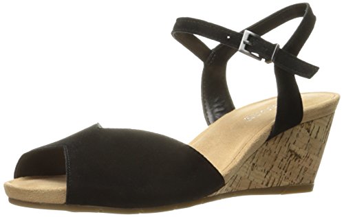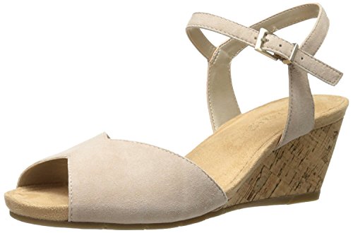 Product Description Heat things up this spring and summer. modern sandal for everyday wear offers a vintage silhouette suede upper against a faux cork-covered 2¾” wedge with a ½” platform. pleasing peep toe. side buckle closure, super-soft memory foam footbed and core comfort to put more ease in your day 0