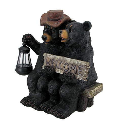 So Happy Together Black Bear Couple Solar Welcome Statue
