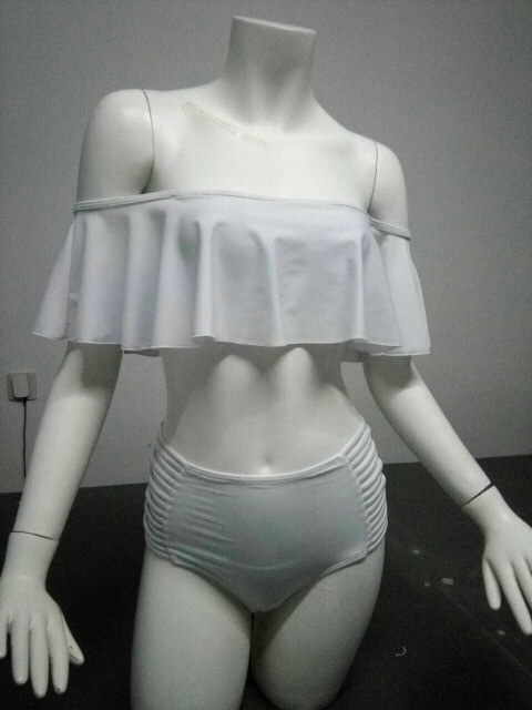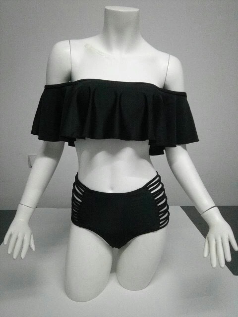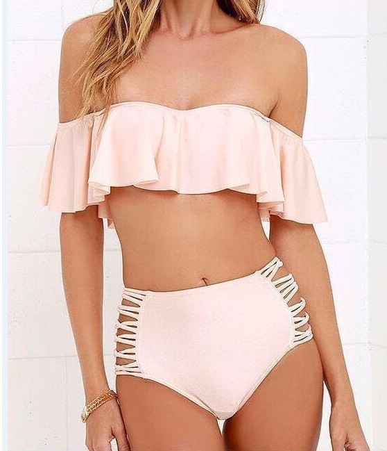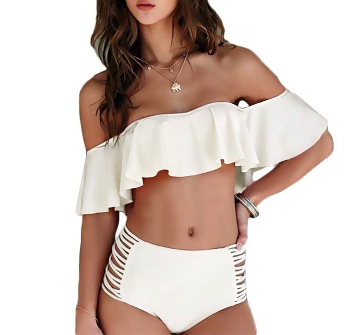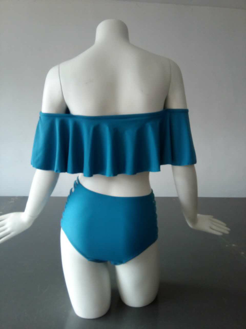 大きめフリルがかわいいシンプルな無地オフショルダービキニです。