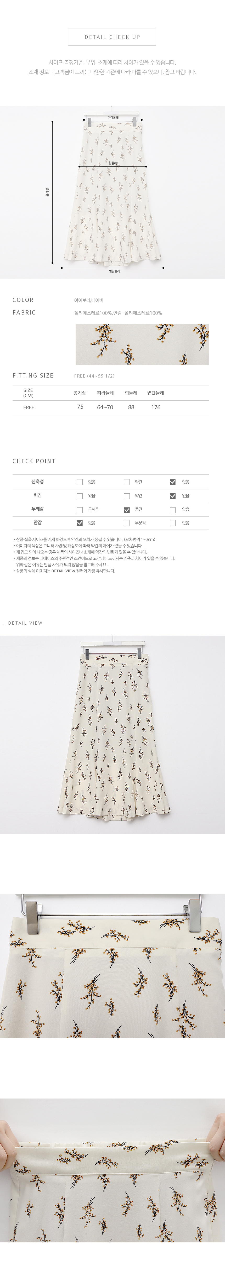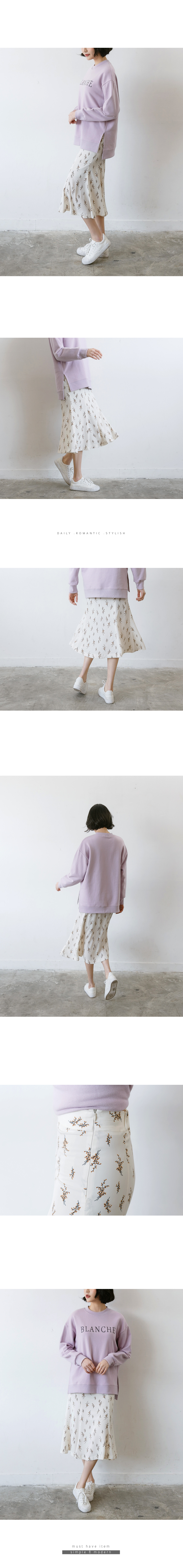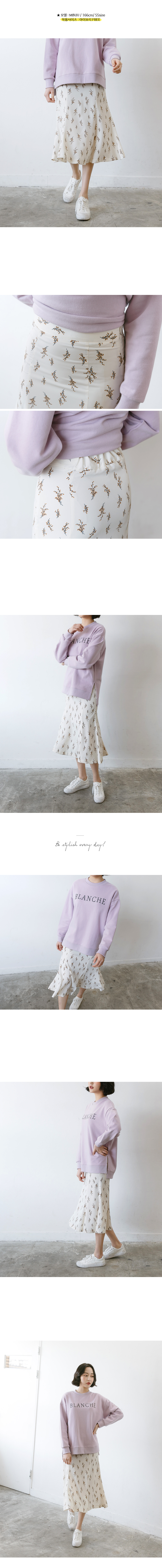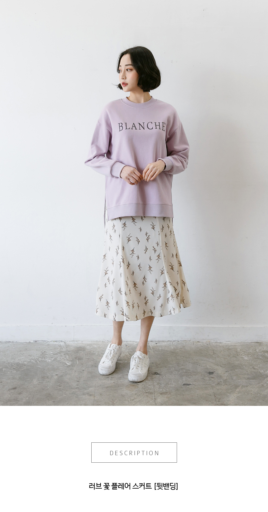 A라인으로 부드럽게 퍼지는 플레어 라인 스커트로 잔잔한 플라워 프린트가 사랑스러운 폴리에스테르 소재 스커트예요. 앞 허리선은 단정하게 오비 처리되어있고 뒤 허리는 밴딩으로 사이즈에 크게 구애받지 않고 편하게 입기 좋은 스커트예요. 무릎선을 살짝 덮는 길이감으로 봄 시즌 사랑스럽게 코디하기 좋은 아이템이랍니다^^ 색상은 아이보리, 네이비 사이즈는 FREE44~55반 ▼ 관련상품 : 블랑쉬 옆트임 맨투맨