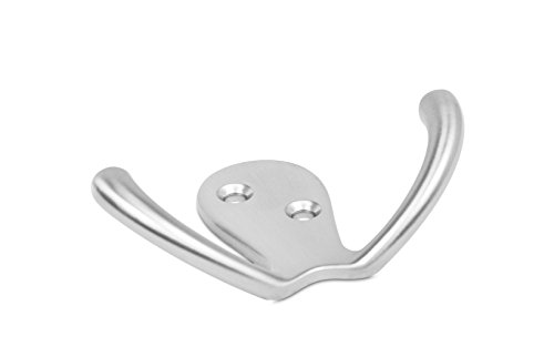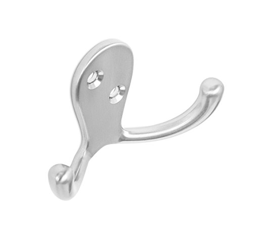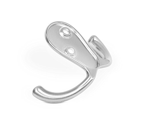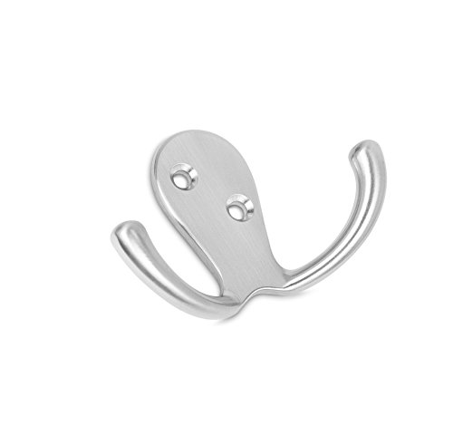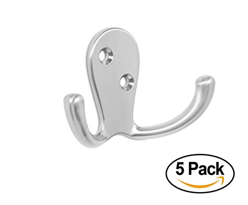 BirdRock Home Simple Wall Mounted Dual Hooks | 5 Pack | Dual Kitchen Towel Hook | Small | Brushed Nickel Towel Robe Hat Coat Hook