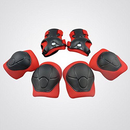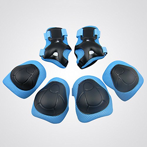 -. Feature : .Set of children knee, wrist, elbow pads and helmet / .Material: Air Mesh + ABS plastic shell (Sponge pad inside) / .Simple but solid design, meticulous care for your kid / .Strong impact resistance, air vent design, breathable / The helmet with elastic velcro straps can adjust size(48-54cm)