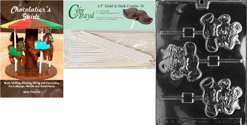 Cybrtrayd 'Party Teddy Lolly' Animal Chocolate Candy Mold with 50 4.5-Inch Lollipop Sticks and Chocolatier's Guide