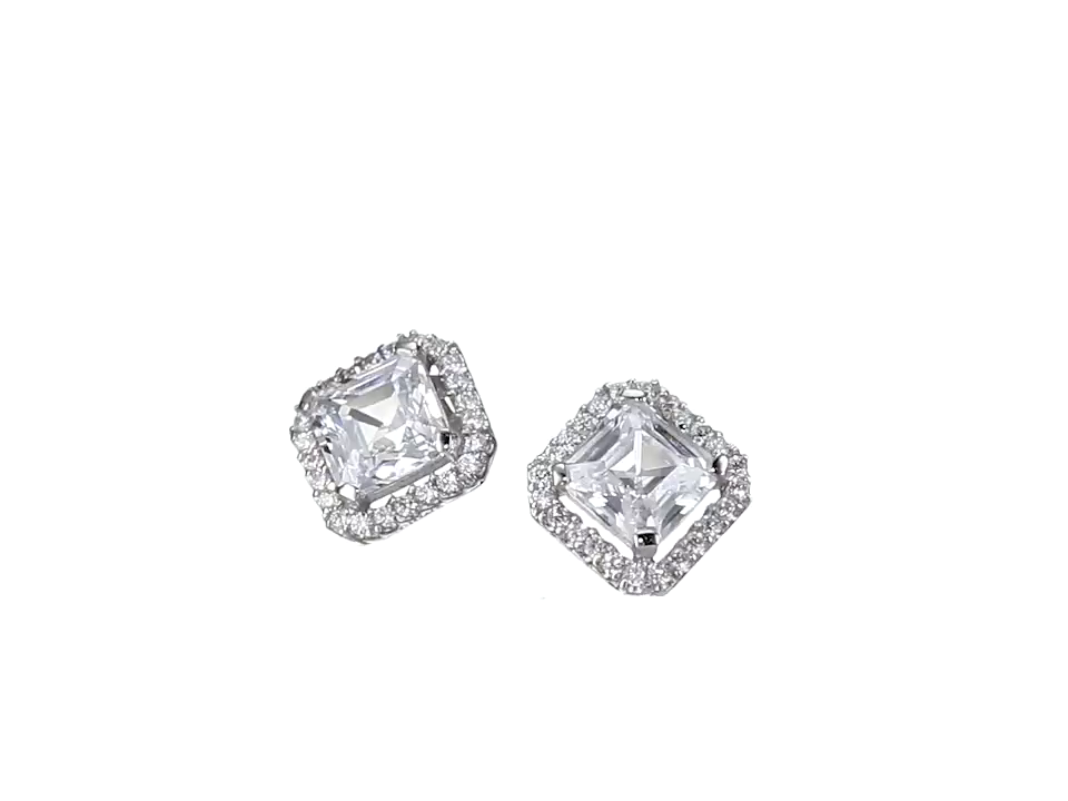 Sterling Silver Cubic Zirconia Halo Stud Earrings