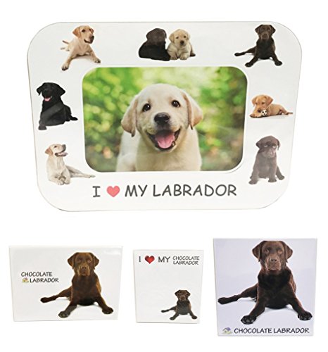 I Love My Chocolate Labrador Magnet Set (2 Metal Magnets, 1 Photo Frame, 1 Memo Pad)