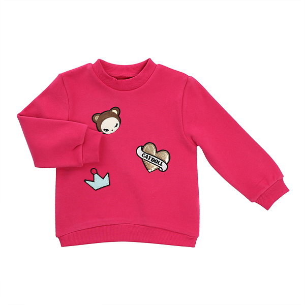 상품설명 핫핑크 컬러의 다이마루 소재의 맨투맨 티셔츠 입니다. 톡톡 튀는 베어캣 패치 자수 포인트로 귀여운 느낌을 주었습니다. 데님 팬츠와 치랭스와 코디하여 편안하게 입히기 좋은 데일리 아이템입니다