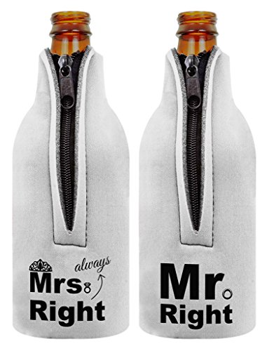 Wedding Gift Mr Mrs Always Right Bottle Coolie 2 Pack Bottle Coolie Drink Coolers Coolies White