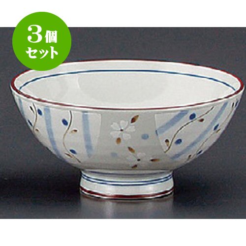 원본상품명: 3個セット 飯碗(磁器) 古染間取花 ?毛料茶碗 [140 x 65mm] 和食器 料亭 旅館 ?食店 業務用