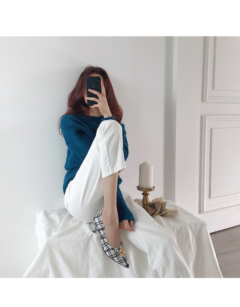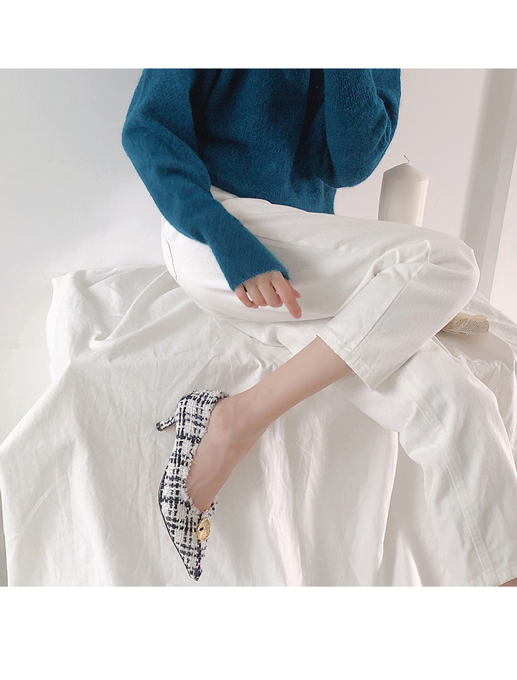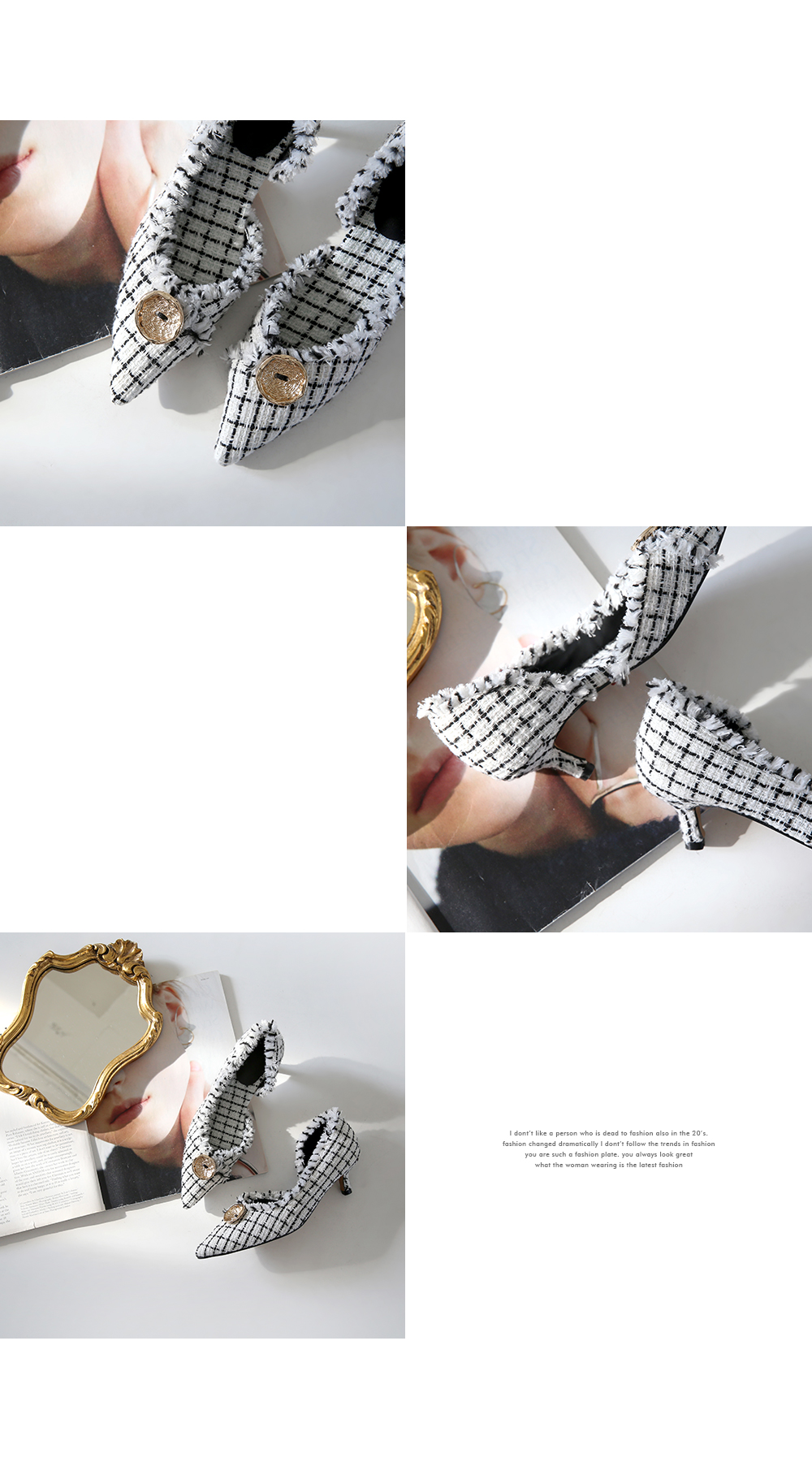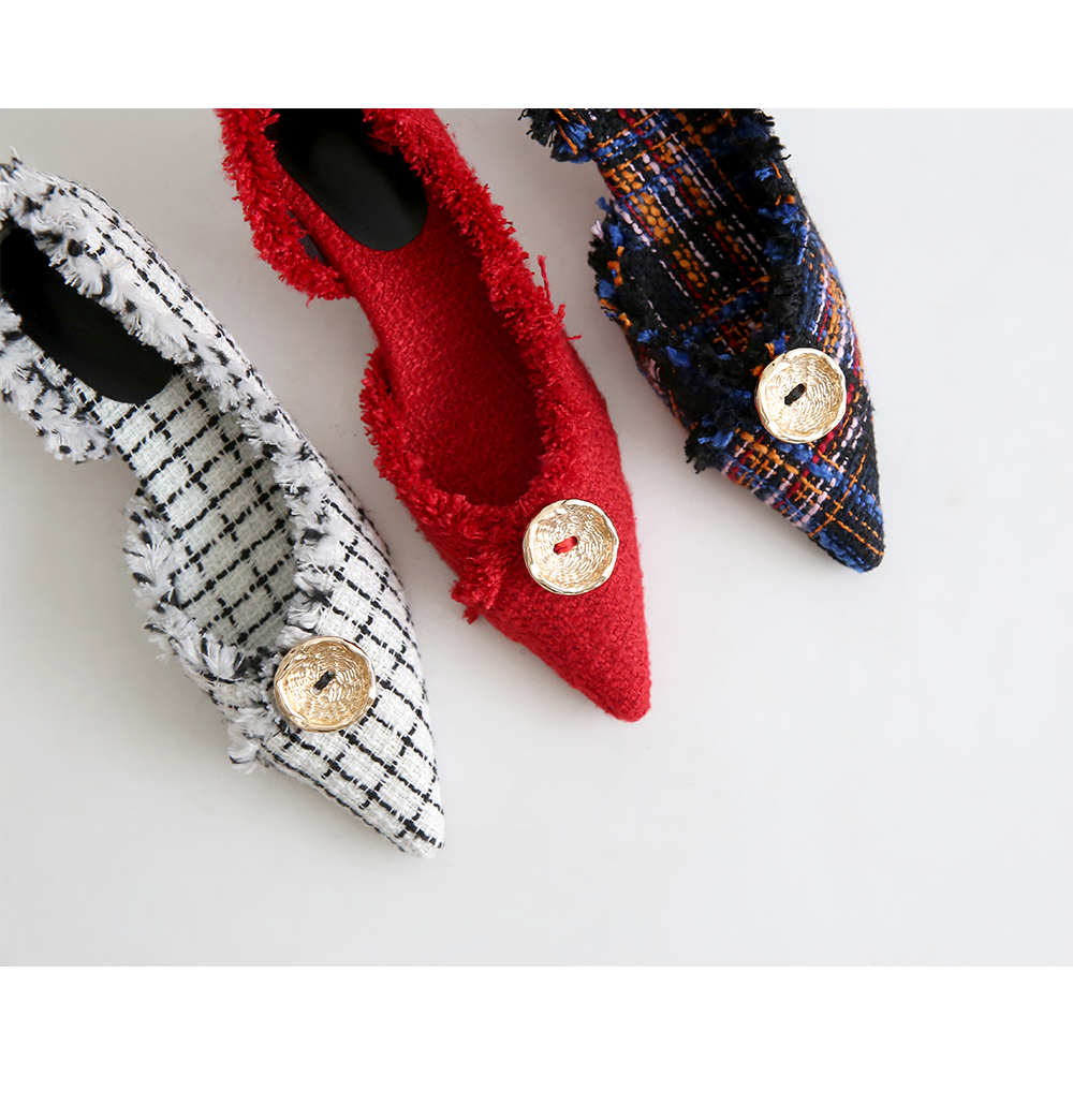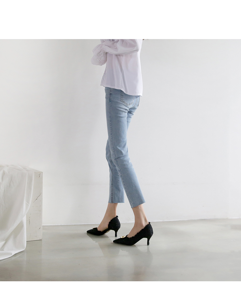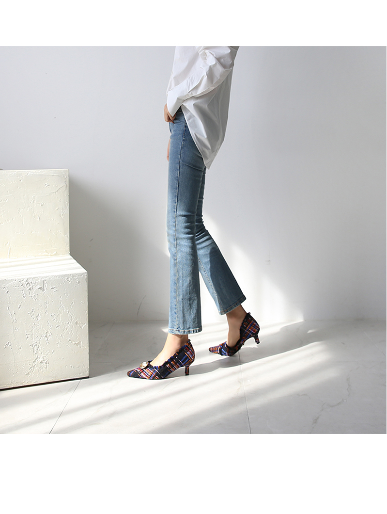 표면을 매끄럽지 않으나 매우 부드러운 트위드 소재로 디자인 된 미들굽의 펌프스입니다.