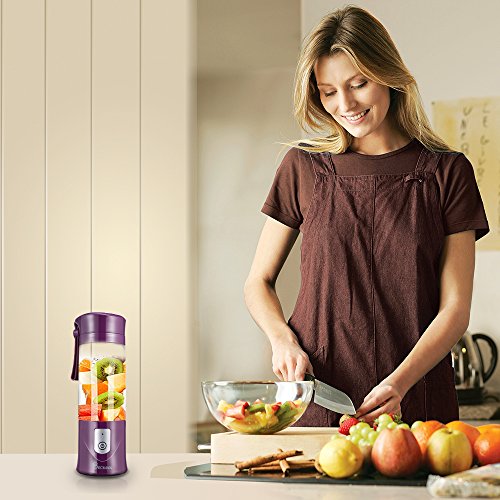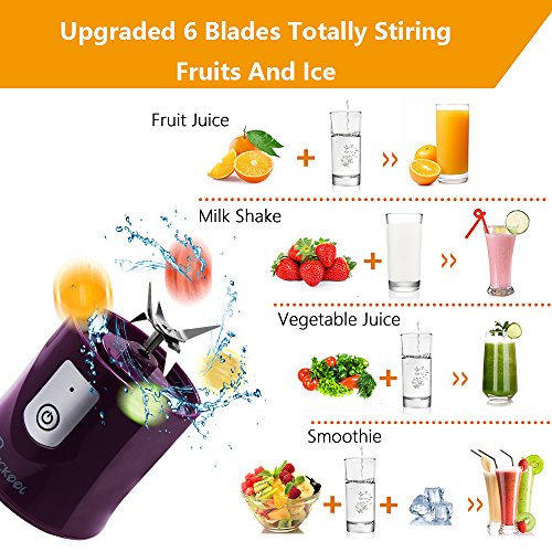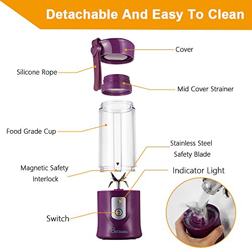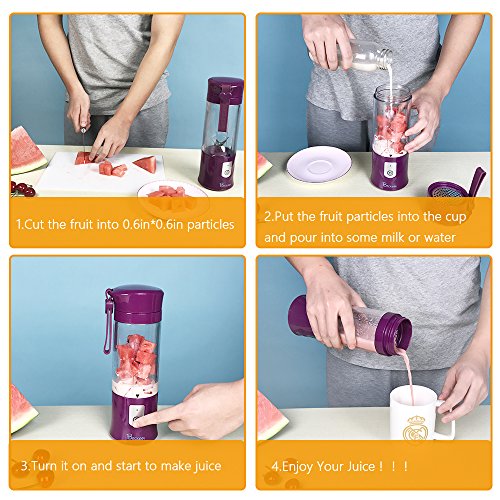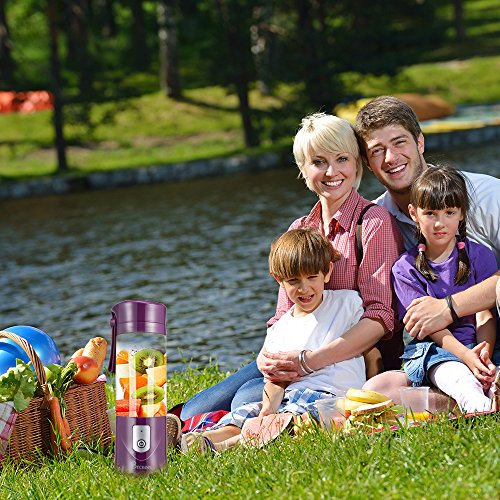 Portable Juicer Blender, Beckool Travel Personal USB Mixer Juice Cup with Updated 6 Blades and More Powerful Motor, 14Oz Water Bottle, 4000mAh Rechargeable Battery, Purple