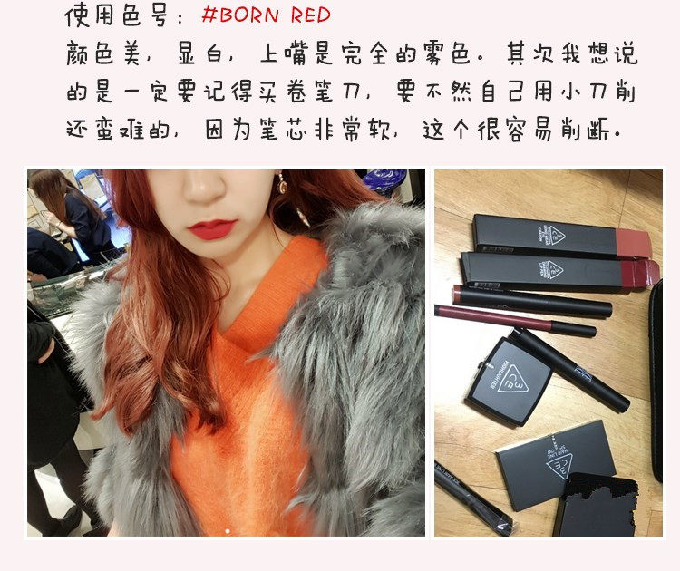 一定要提示大家的是哑光产品本身毫无滋润感可言,介意的千万不要拍。我明确的告诉大家这款