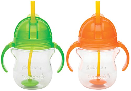 Munchkin Click Lock 7 Ounce Weighted Flexi-Straw Cup, 2 Pack, Green/Orange