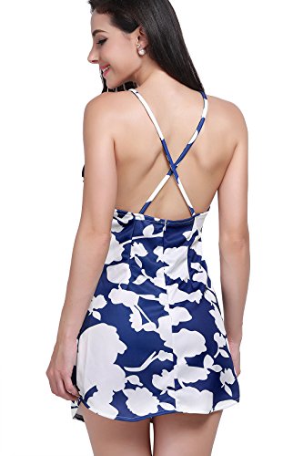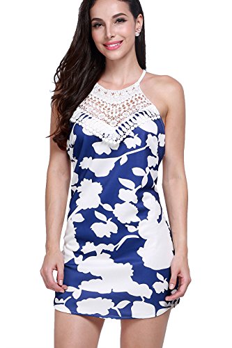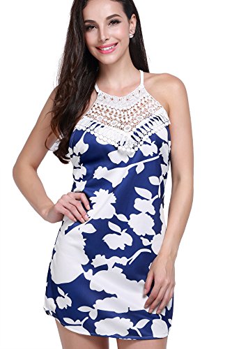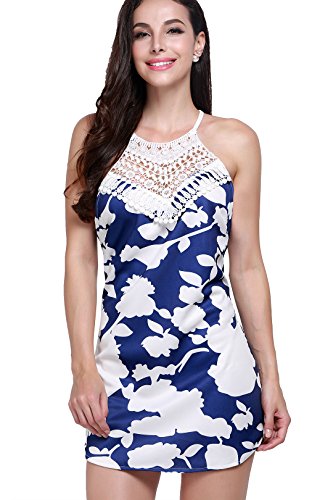 Title : YOINS Women Lace Neck Floral Print Cross Back Mini Dress Picture US 4