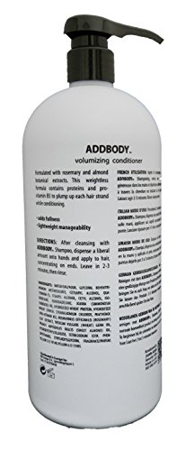 J Beverly Hills ADDBODYTM VOLUMIZING CONDITIONER ADDS FULLNESS • LIGHTWEIGHTMANAGEABILITY Formulated with rosemary and almond botanical extracts. This weightless formula contains proteins and pro-vitamin B5 to plump up each hair strand while conditioning.
