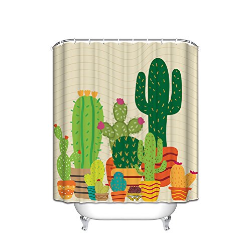 BMALL Potted Plants Cactus Shower Curtain Green life Mildew Resistant Polyester Fabric Bath Fantastic Decorations Bath Curtain Hooks included 72X72 inches
