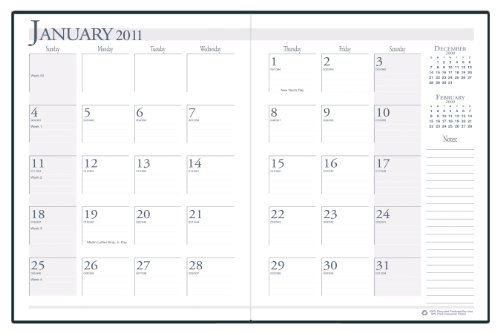 - One Month per Two-Page Spread / Prior Month and Following Month Reference Calendars