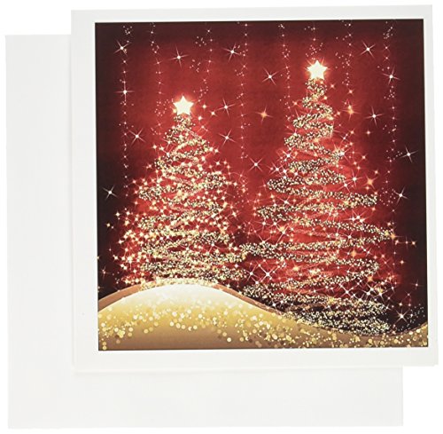 3dRose Elegant Christmas Sparkling Trees Red Greeting Cards, Set of 12 (gc_35705_2)