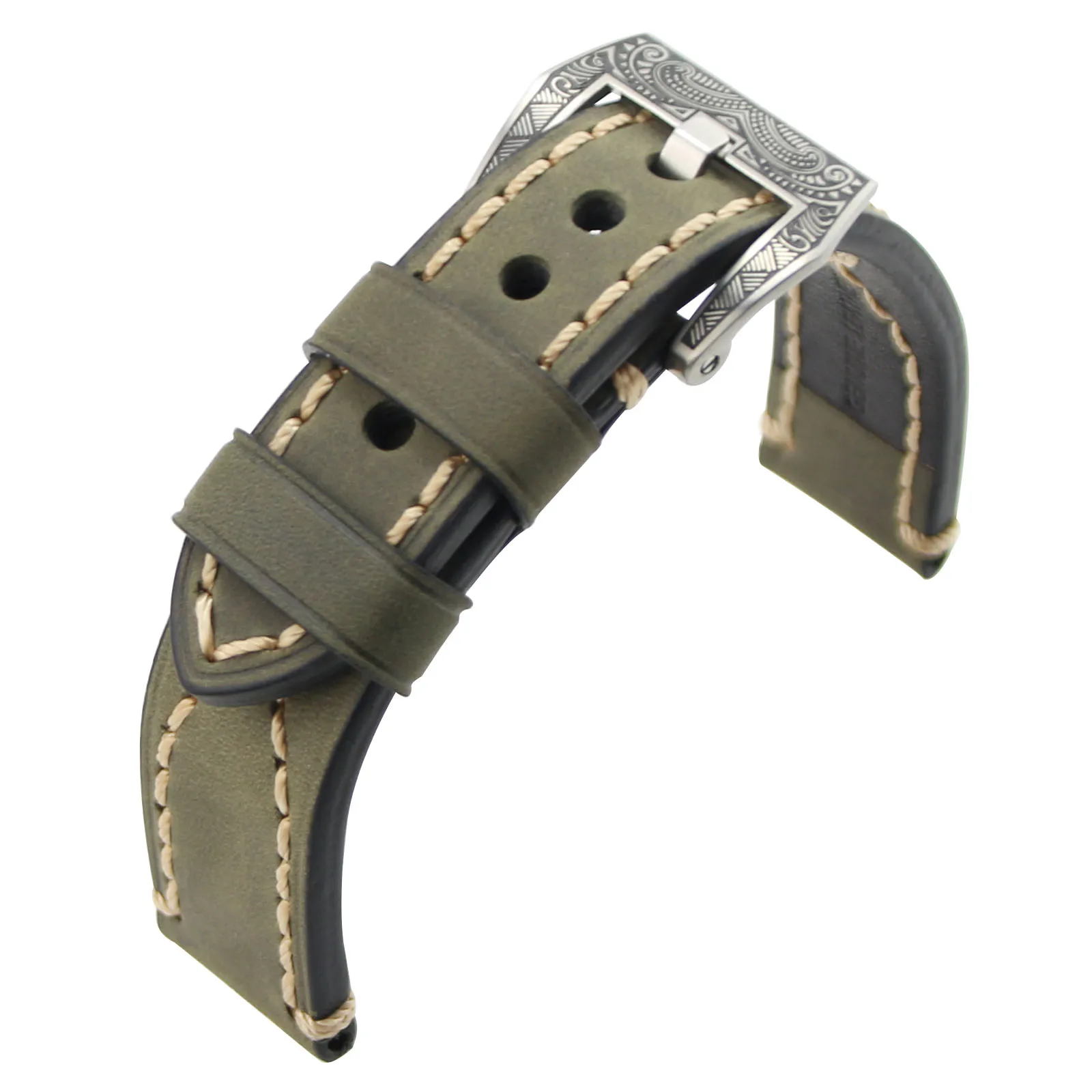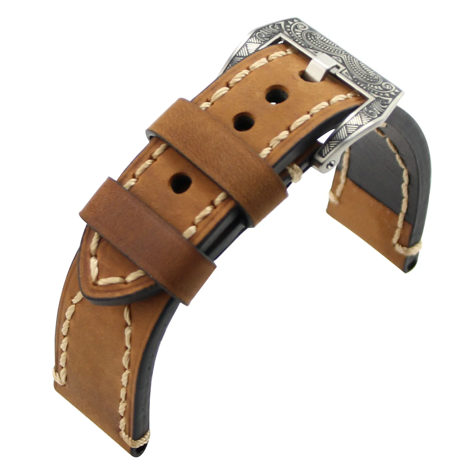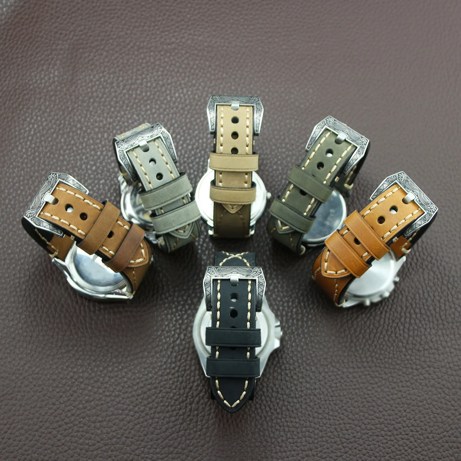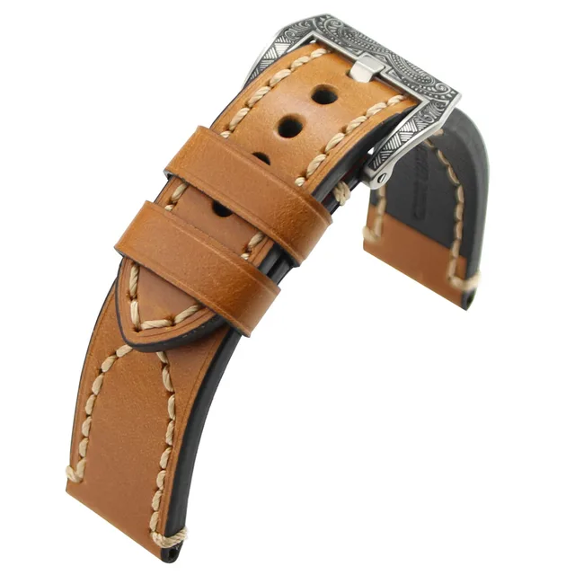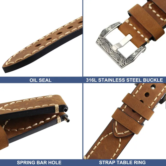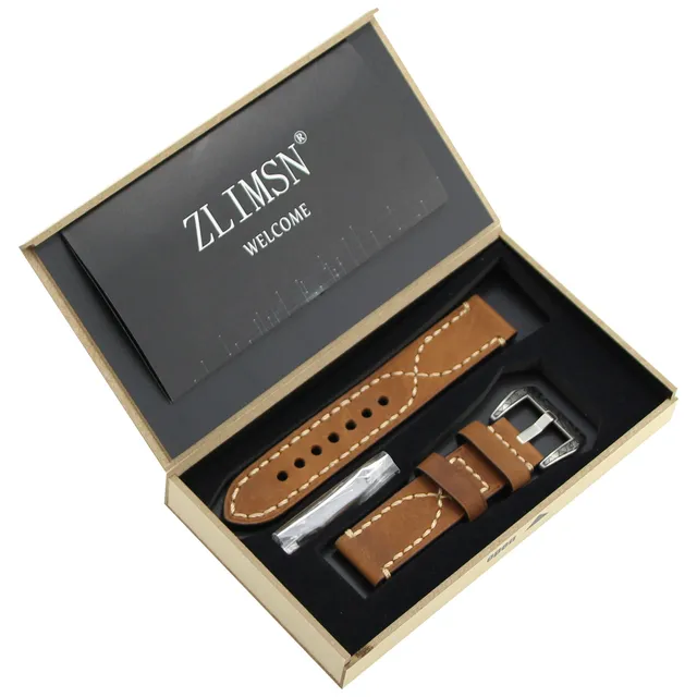 | [해외] ZLIMSN 수동 두꺼운 정품 가죽 시계 밴드 벨트 교체 브라운 그레이 20 22 24 26 미리메터 조각 316L 스테인레스 스틸 버클 |