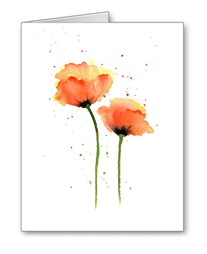 -. Feature : "Poppies" artwork by watercolor artist DJ Rogers. / Note card size is 4.25 x 5.5 inches / Set of 10 note cards with matching white envelopes. / Note cards are blank inside for your personal message. / Suitable for framing.