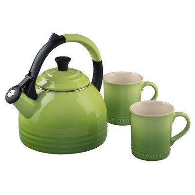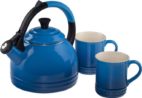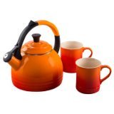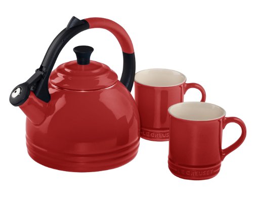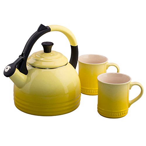 The colorful set includes a beautiful kettle with a colorful anti-slip grip and two stoneware mugs - the perfect gift for any tea lover.